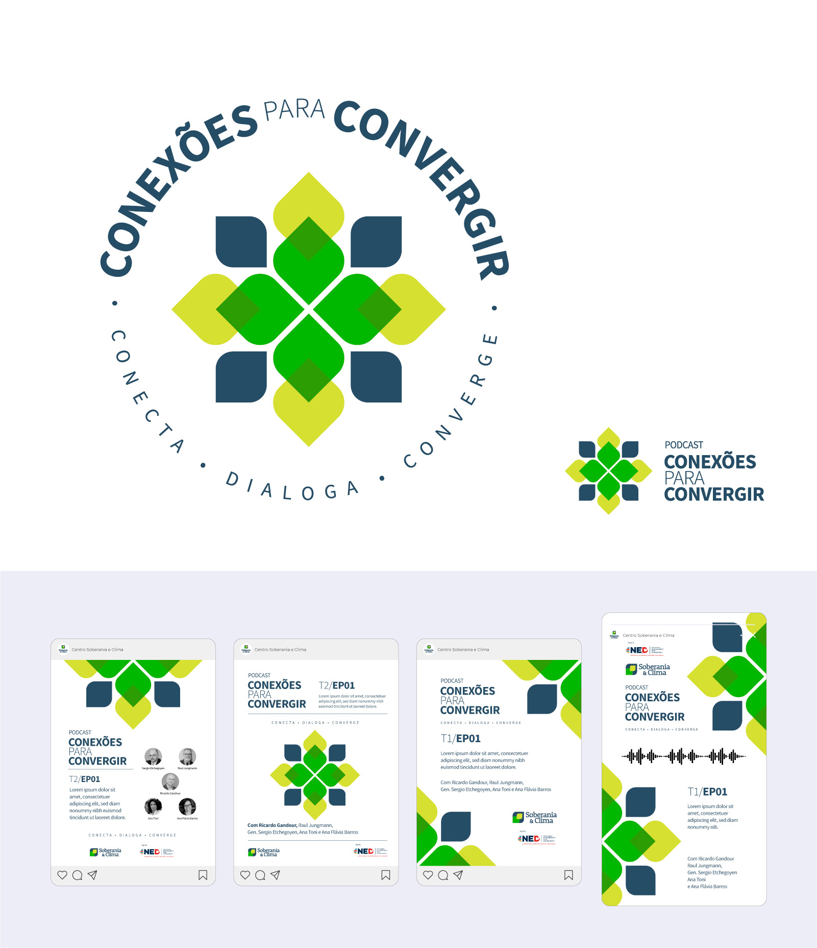 In addition to the magazine, I also created the visual identities for the podcast Conexões para Convergir and for Escola Soberania e Clima.